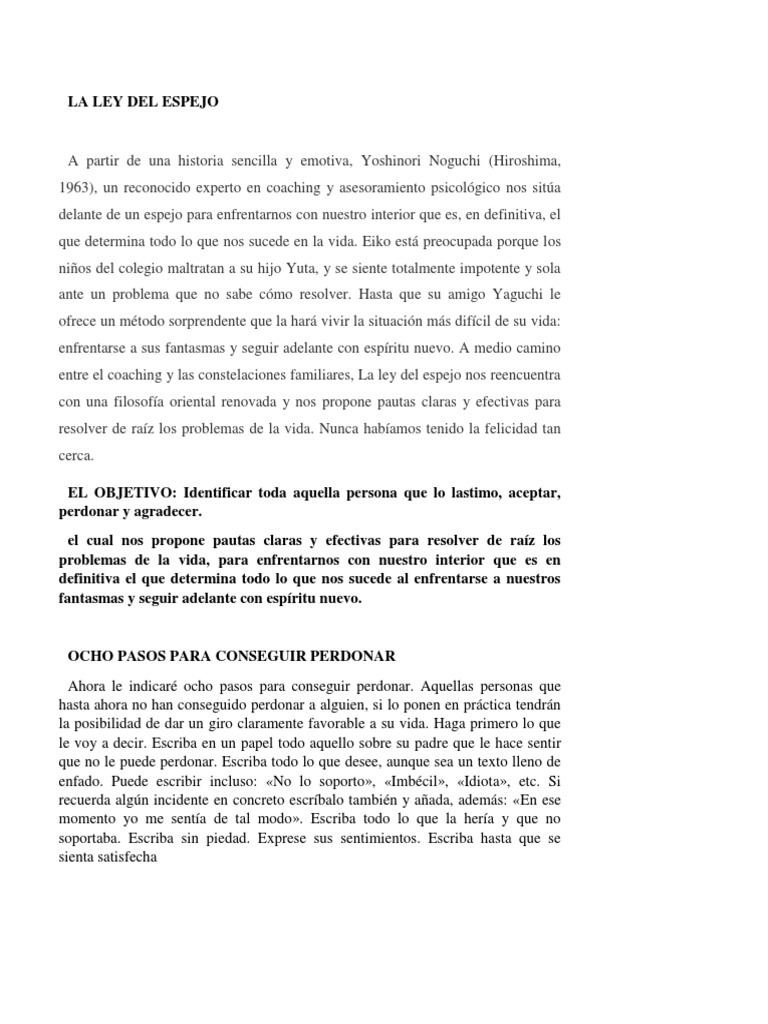 La ley del espejo pdf yoshinori noguchi from summumdump.com Escrito por yoshinori noguchi (hiroshima, 1963) el 90% de los lectores japoneses han llorado con esta historia, que se transmite en el libro la ley del espejo. Es que el modo en que está escrito y. La ley del espejo ha alcanzado los 1000 seguidores! Libros por la letra a. A partir de una historia sencilla y emotiva la ley del espejo, yoshinori noguchi, un reconocido experto en coaching y asesoramiento psicológico, nos sitúa delante de un espejo para enfrentarnos con nuestro interior que es, en definitiva, el que determina todo lo que nos sucede en la vida. Elejandría es un portal web para descargar libros gratis en pdf, epub y mobi de forma legal. Full es compatible con todas las versiones de su dispositivo, incluyendo pdf, epub y kindle. Todos nuestros libros están en domino público o con licencias abiertas.
